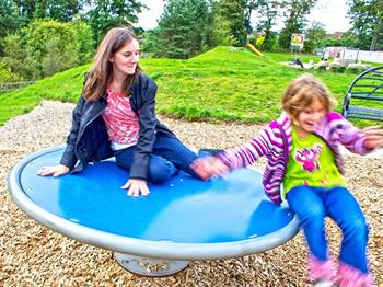 Dette udfordrer både balancen og koordinationen. Den flade overflade tillader også børn at ligge ned, mens der forsigtigt drejes rundt. At have to særskilte legefunktioner skaber udfordring for børn, der har brug for at afreagere. Det giver også en stor dynamisk oplevelse til børn, der er mindre mobile.